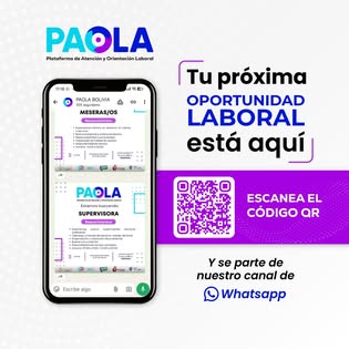 Conectamos tu talento con nuevas oportunidades de empleo, escanea el código QR o haz click en el siguiente enlace y se parte de nuestro canal de WhatsApp para recibir convocatorias actualizadas.